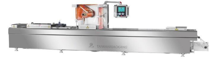 5、隨后同時加熱加壓將塑料袋封口,然后真空室冷卻回氣,工作室蓋上升至另一側。工作室蓋落下。完成一次封口。